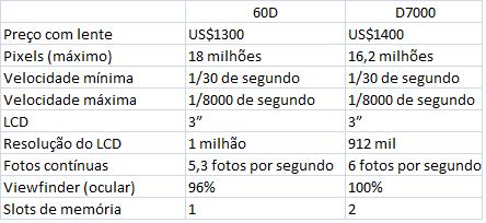 Difícil decisão… Na comparação entre as duas, um critério mais relevante para o futuro usuário pode determinar a compra. Eu, por exemplo, já tinha lentes Nikon para usar, por isso, optei pela D7000.
